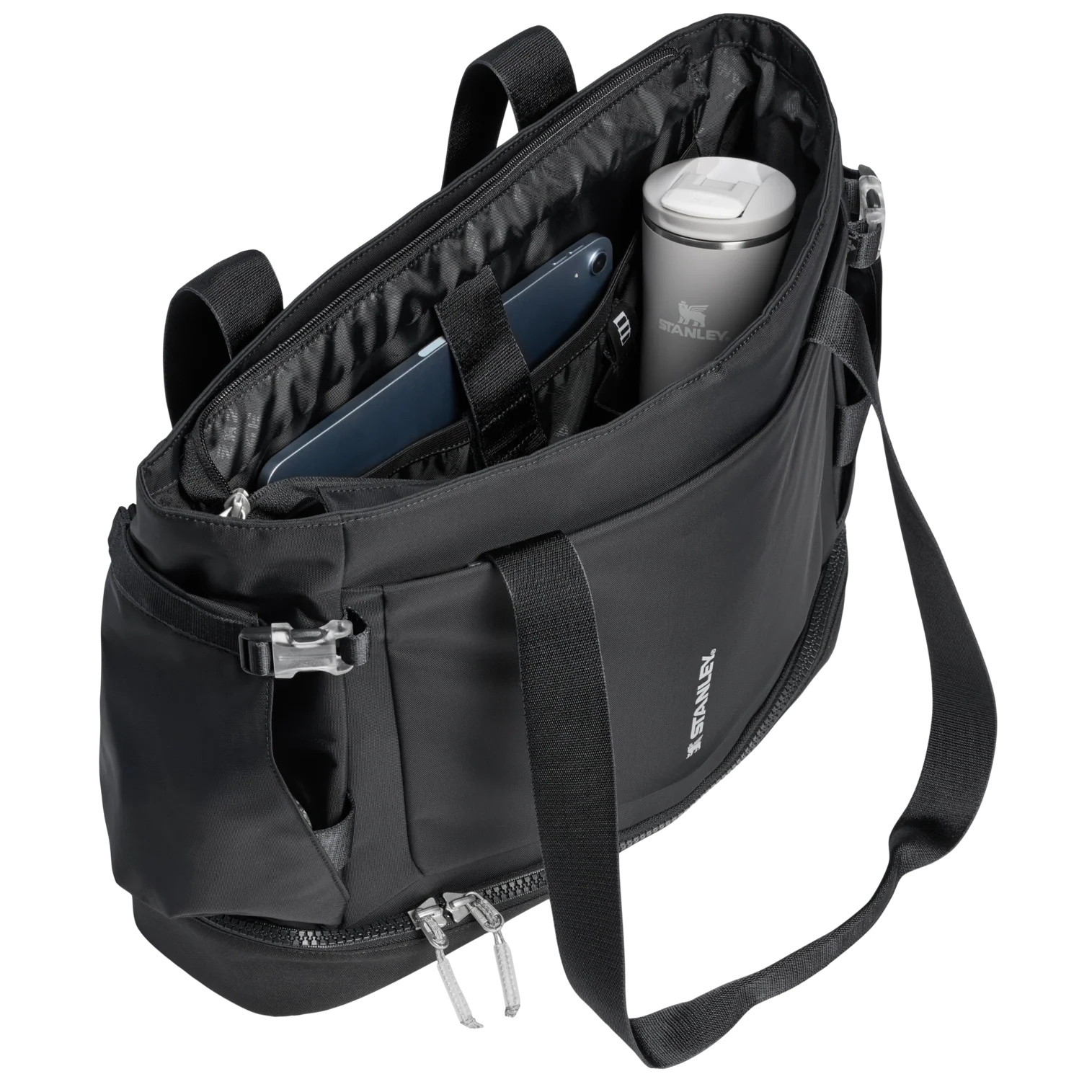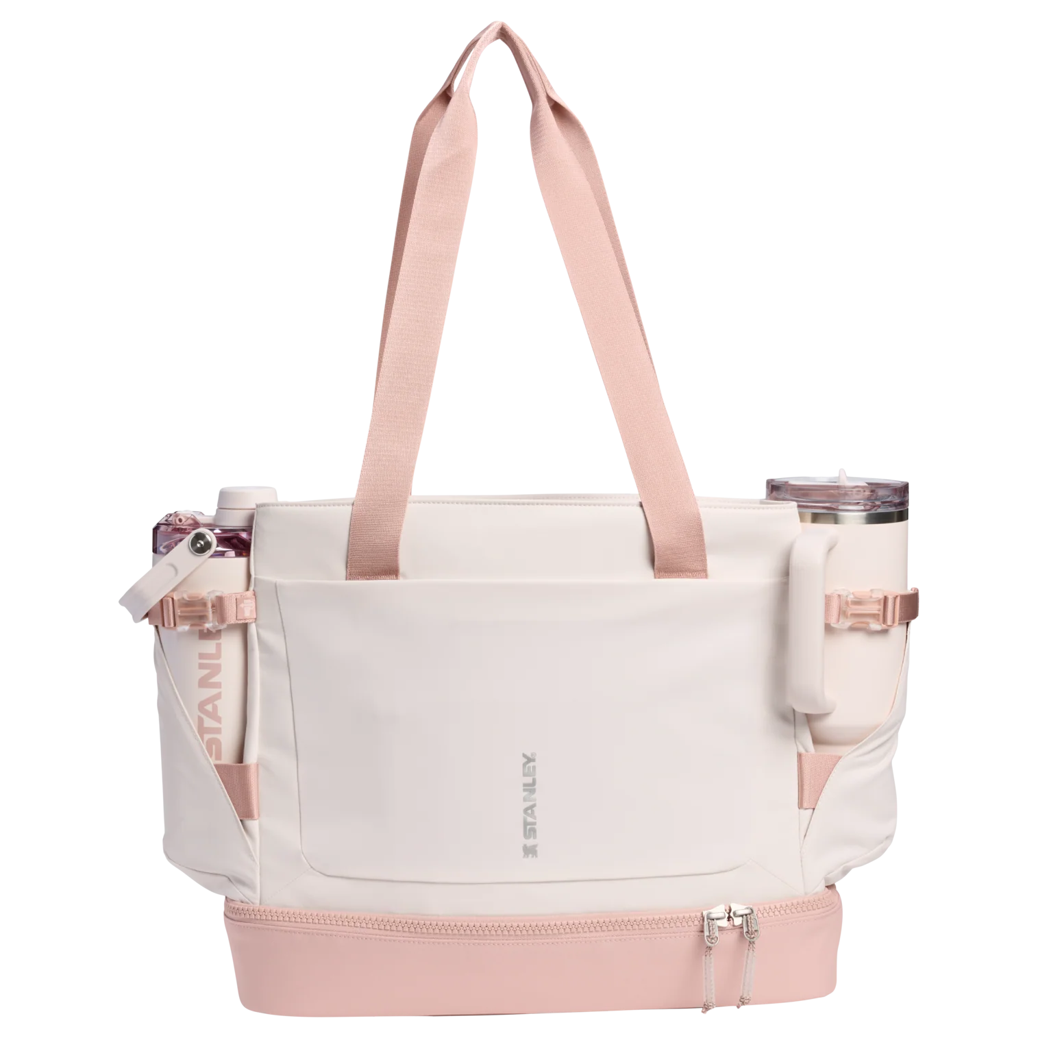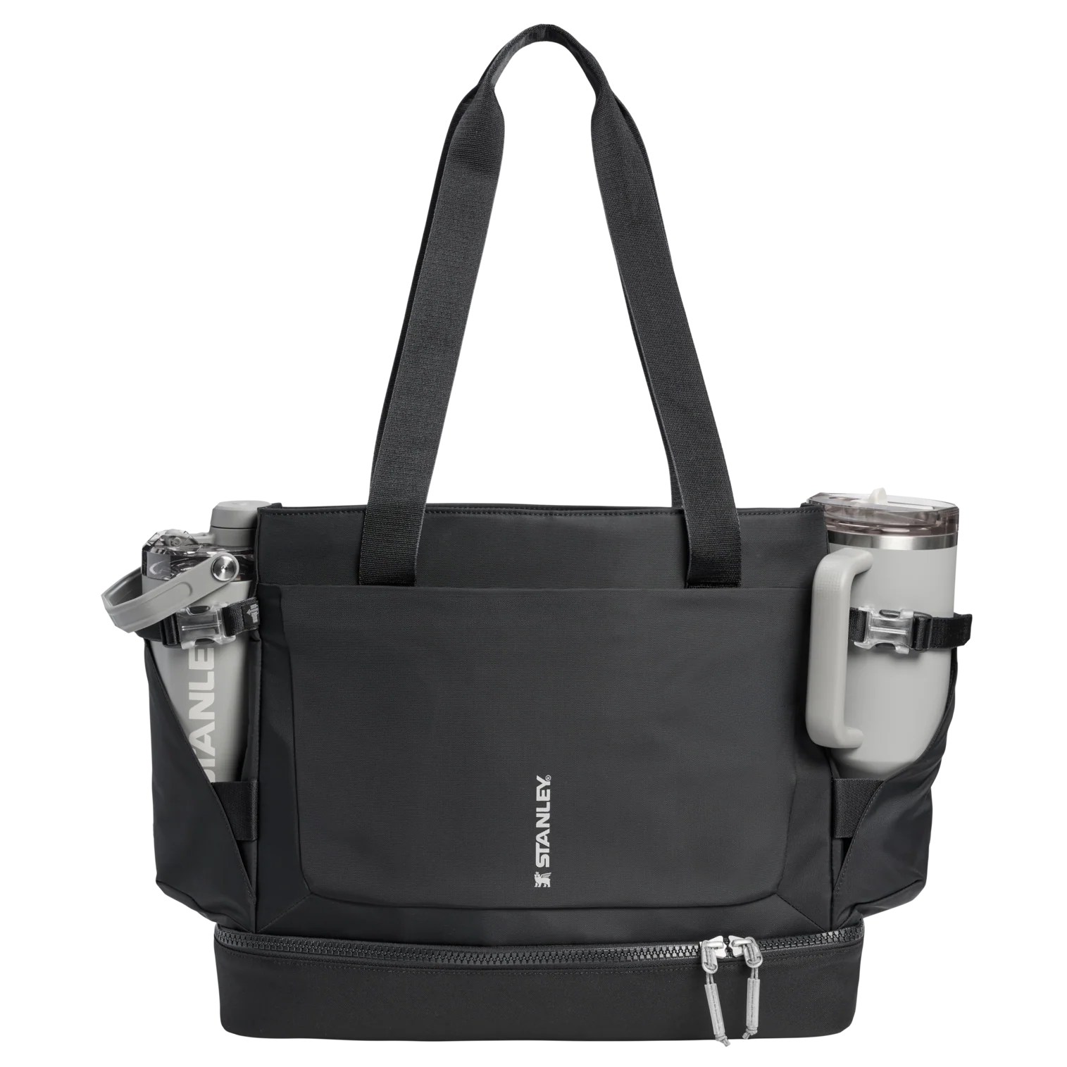 The Vitalize™ Tote carries it all. Outside, the Tumbler Securing Belt and Pocket holds your 40-ounce Quencher® ProTour or Vitalize™ Shaker with easy access. A front zip pocket holds your phone, keys and wallet. Inside, the zippered main compartment has space for a jacket or change of clothes, and a sleeve for your laptop. The zippered, multi-function bottom compartment grows upward to hold food containers, shoes, post-workout clothes and more. Grab the carry straps or toss it over your shoulder and get started.