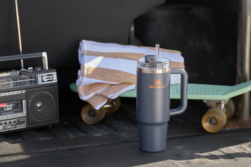 Constructed of recycled stainless steel for sustainable sipping, our 40 oz Quencher H2.0 offers maximum hydration with fewer refills. Commuting, studio workouts, day trips or your front porch—you’ll want this tumbler by your side. Thanks to Stanley’s vacuum insulation, your water will stay ice-cold, hour after hour. The advanced FlowState™ lid features a rotating cover with three positions: a straw opening designed to resist splashes while holding the reusable straw in place, a drink opening, and a full-cover top. The ergonomic handle includes comfort-grip inserts for easy carrying, and the narrow base fits just about any car cup holder.