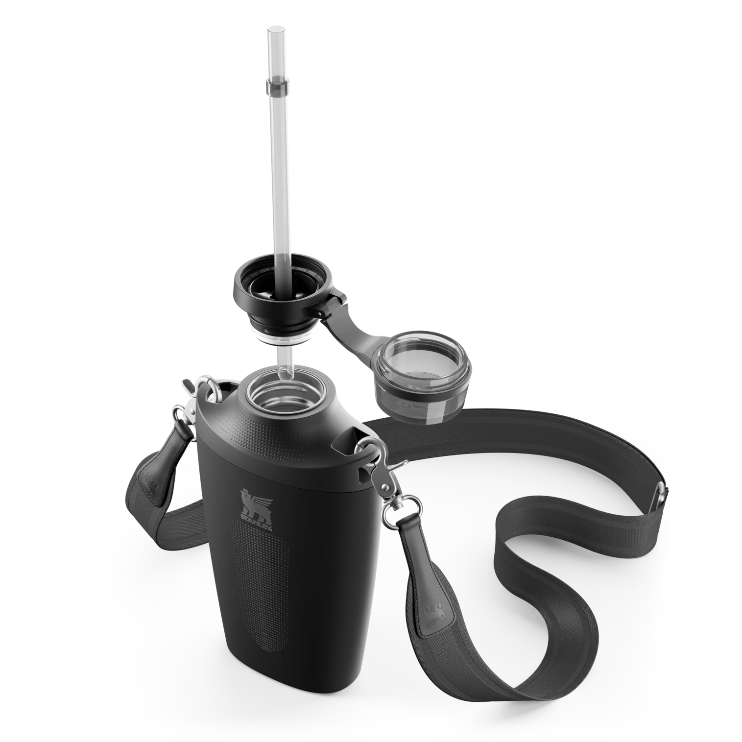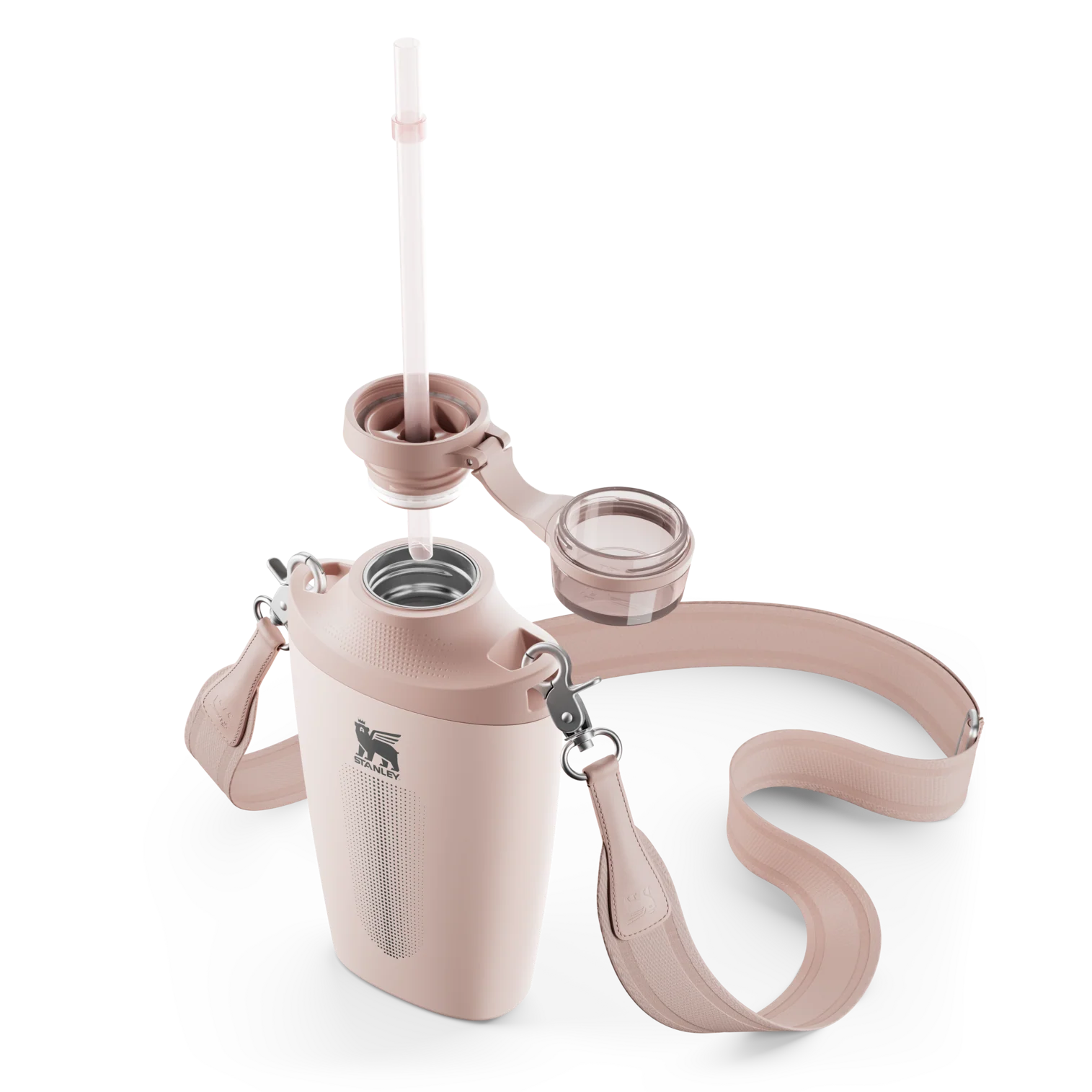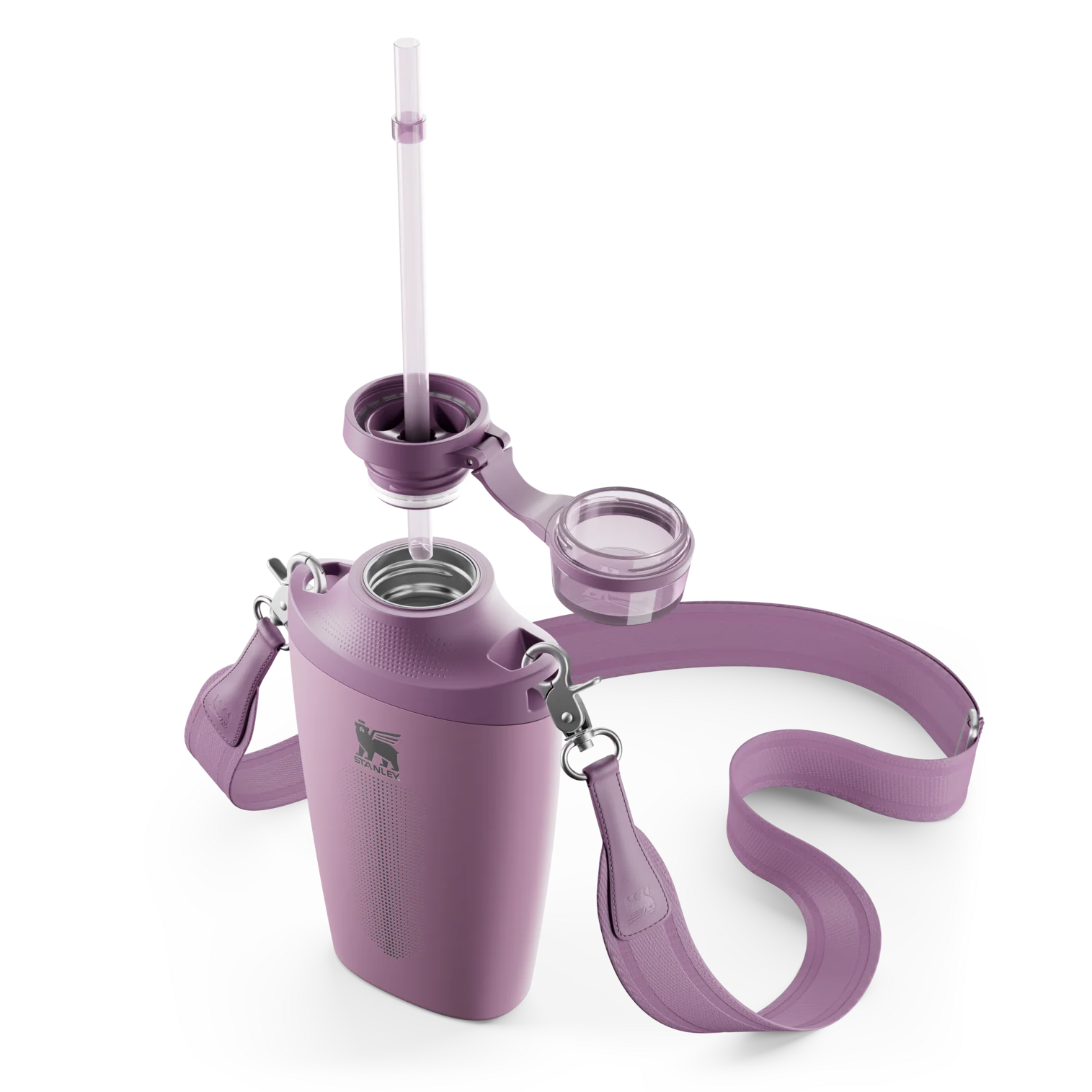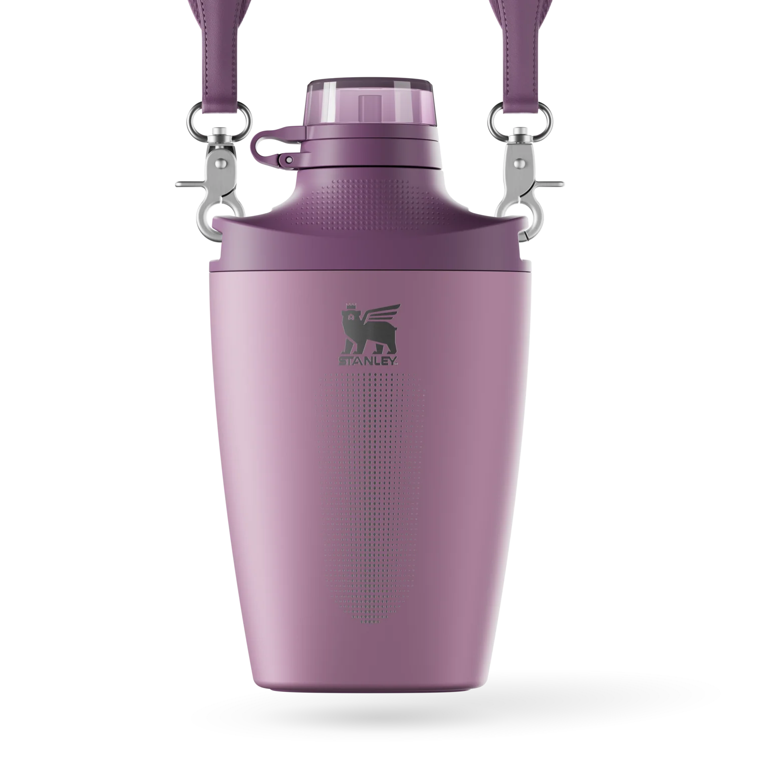 With color blocking details in classic neutrals and cool-toned pops, the Stanley Cross Bottle is designed for hands-free hydration. Features include a silicone base to cushion every landing, a tinted lid cover, and a soft-woven jacquard strap. From outdoor activities to year-round travel, elevate how you hydrate. Just sling the Cross Bottle over your hip for instant sips.